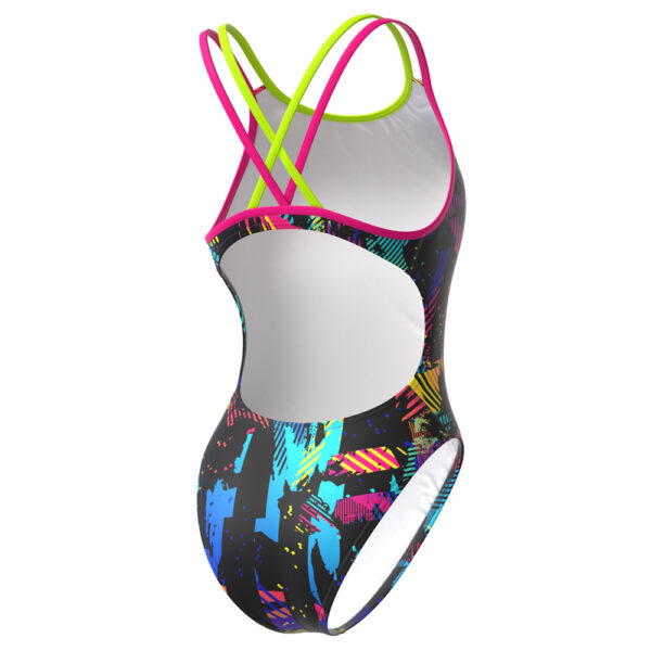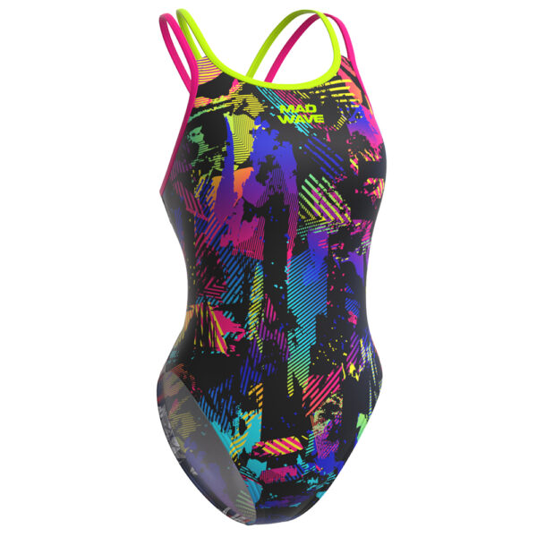 - El traje de natación Jr. Crossback E2 de madwave, viene con la espalda descubierta y las tiras finas dobles proporcionan una libertad adicional de movimiento de los brazos y una sensación de ligereza en al agua.