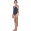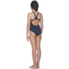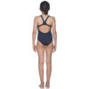 El traje de natación SwimPro de arena fue creado para un rendimiento duradero, el Modelo Maxlife que es 100% Poliéster, la cual es lo suficientemente fuerte para resistir el cloro pero lo suficiente suave para piel de niñas. El Corte de espalda Swim Pro proporciona una flexibilidad total con un recorte y correas que no se mueven.