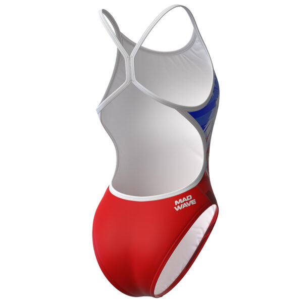 - El traje de Natación de Mujer Flash de Mad Wave, con su estampada brillante está diseñado para quienes entrenan diariamente a nivel competitivo, con un corte de espalda abierta y un corte ergonómico te da aún más libertad de movimiento en el agua.